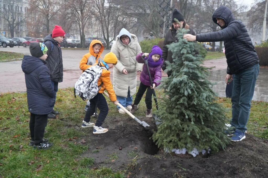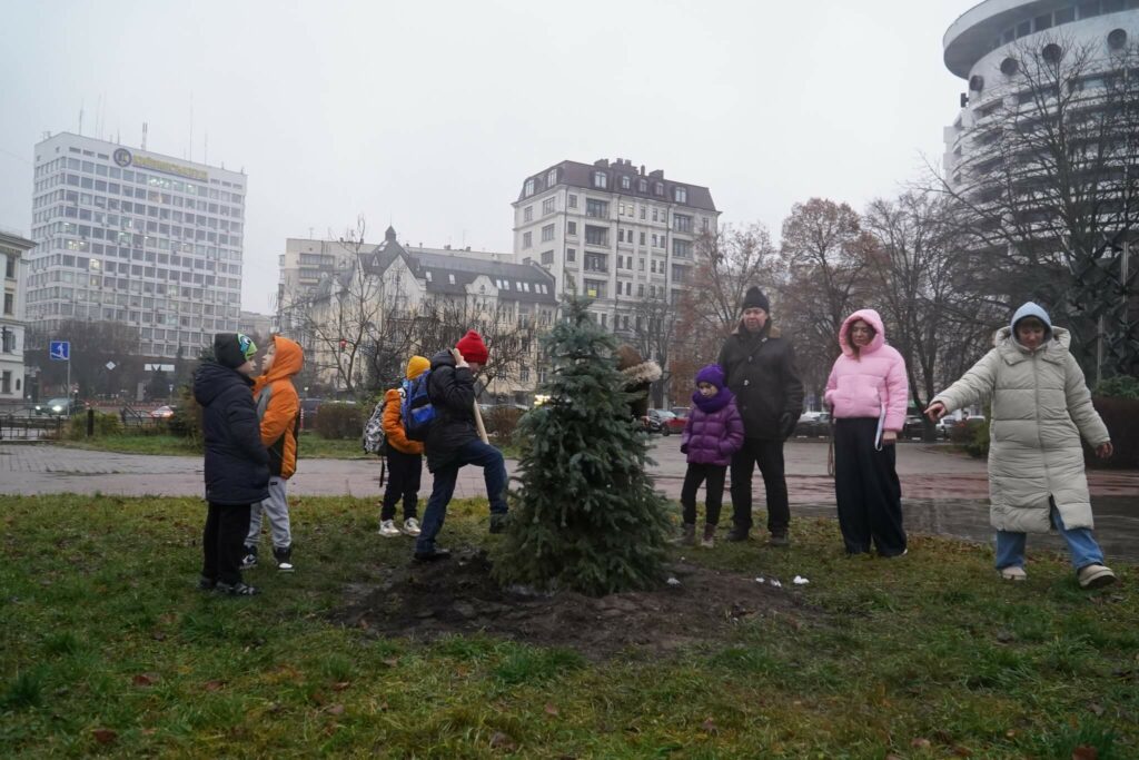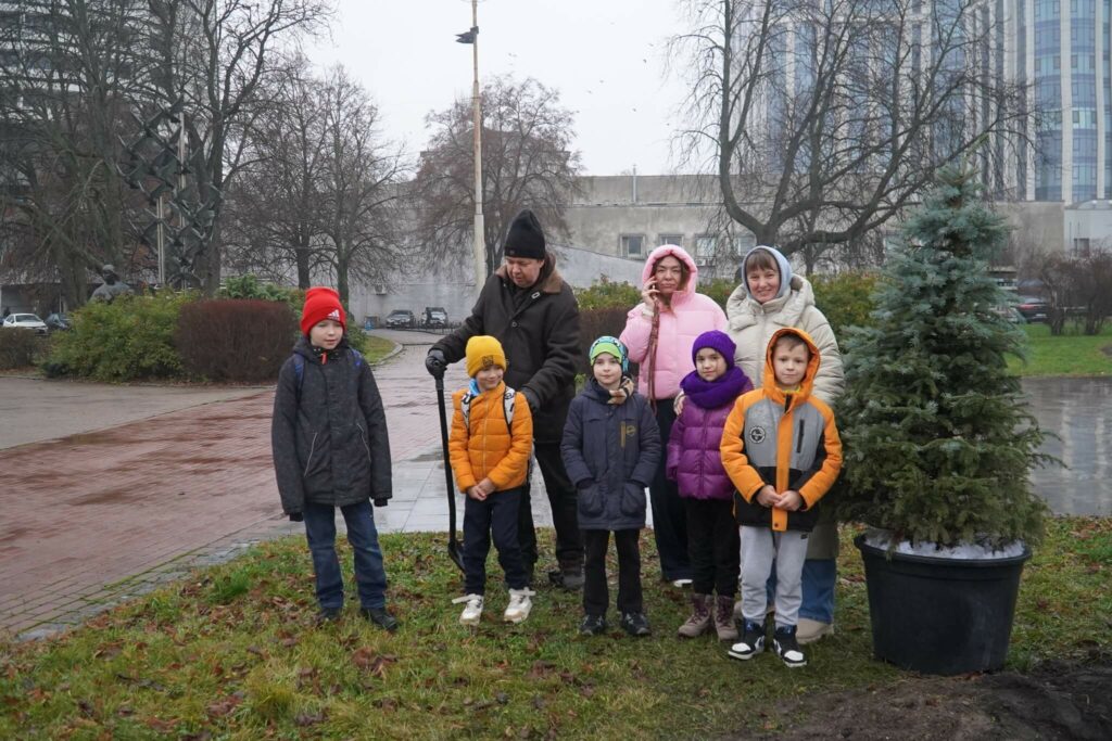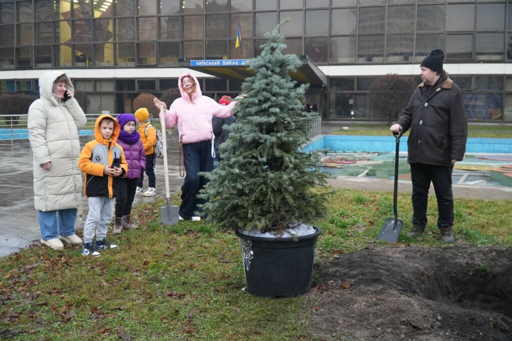 Ялинку, яку учасники 4-го етапу Дитячої Шашкової Ліги Відділу туризму, краєзнавства та спорту власноруч прикрасили іграшками, створеними спеціально для Київського Палацу дітей та юнацтва, висаджено поруч із центральним входом Палацу.