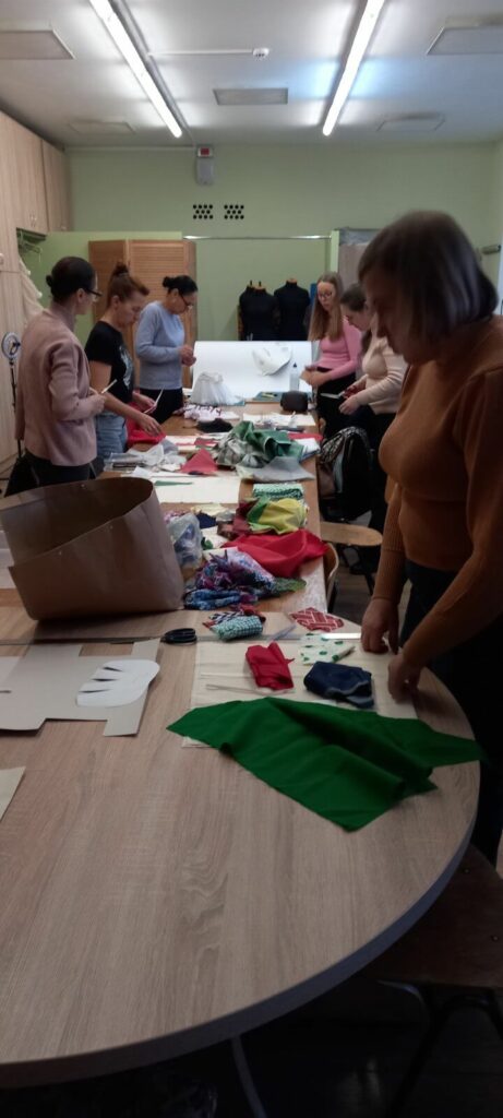 Учасниці працювали над заготовками наволочок із новорічними декоративними елементами — обирали композиції, поєднували тканини, створювали святковий настрій своїми руками.