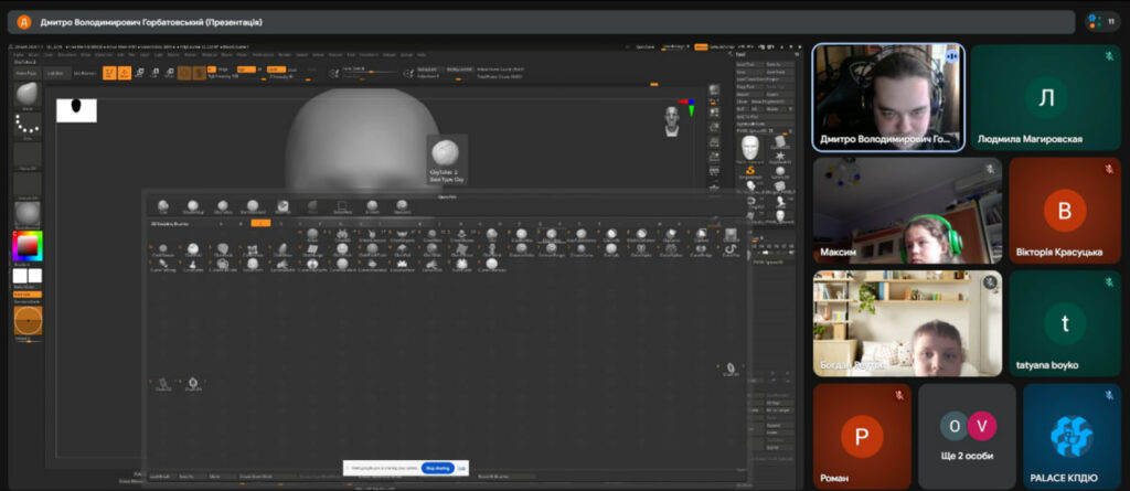 Учасники мали можливість ознайомитися з можливостями програми ZBrush, дізнатися про основні інструменти створення тривимірних моделей та особливості роботи з цифровою скульптурою. Під час тренінгу було продемонстровано ключові етапи створення 3D-моделі та розглянуто практичні аспекти роботи в програмі.