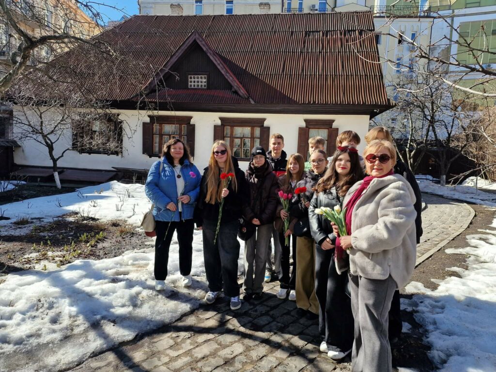 У гості до Будинку-музею Тараса Шевченка в Києві, розташованому поруч із Хрещатиком (колись вул. Козине болото, 😎, завітали юні журналісти Інформаційно-творчого агентства “ЮН-ПРЕС” Київського Палацу дітей та юнацтва для відзначення 212-ї річниці з Дня народження великогоКобзаря та знайомства з культурною історією Києва середини XIX ст.