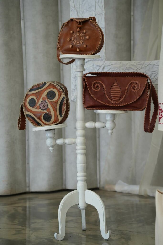 👛В експозиції представлені ексклюзивні вироби ручної роботи, що відображають найсміливіші фантазії майстрів, а особливого змісту виставці надають українські орнаменти: глибокі за своєю символікою та надзвичайно актуальні в сучасному дизайні.